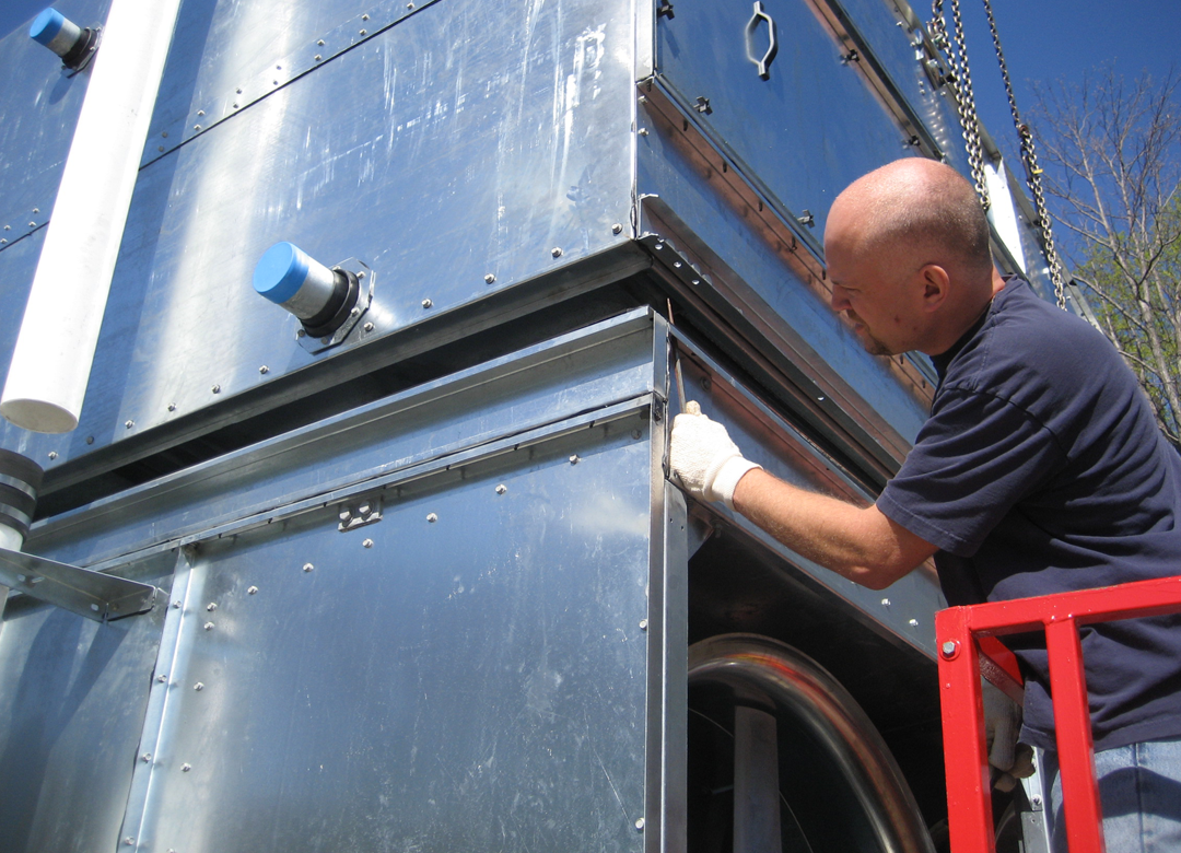 - Ground level access to the fans, motors, and pump(s) eliminates the need for platforms or ladders to access them